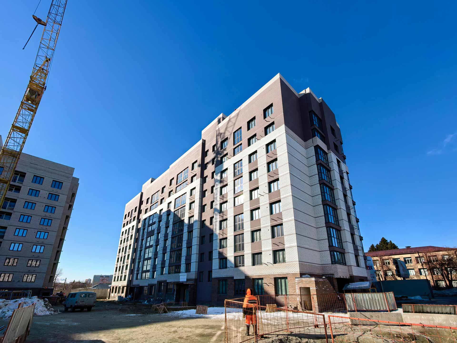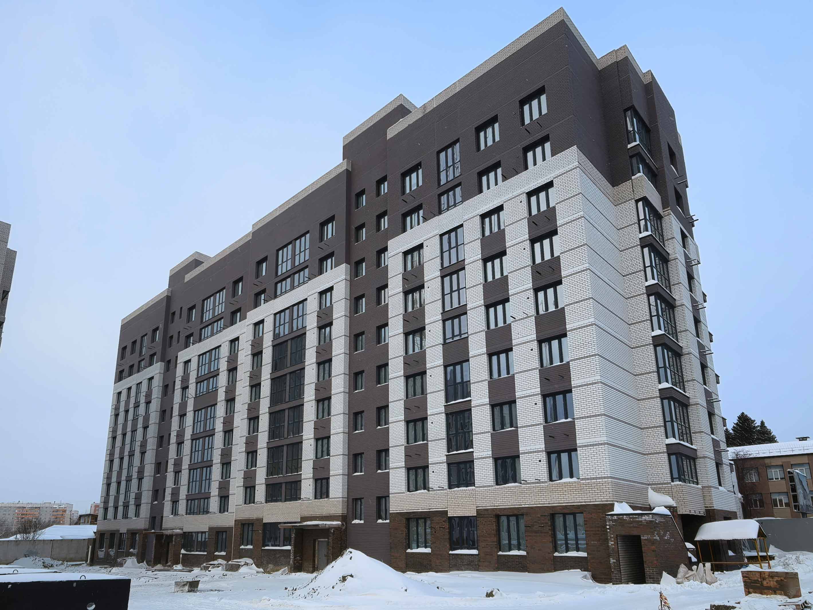 Предлагаем к покупке первый корпус, состоящий из двух подъездов. В каждом запроектированы квартиры с продуманной планировкой от 34,8-95,7 квадратных метров. Фасады выполнены в стилизованных формах с использованием остекленных лоджий и архитектурной подсветкой. Высота 1 и 9 этажа - 3 метра.
